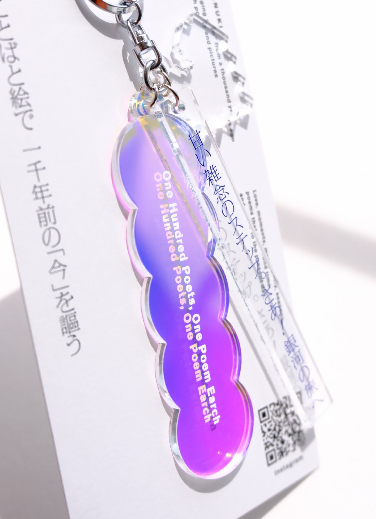 ・百人一首を英訳した「One hundred poets, One poemsEarch 」を記したベースのチャーム