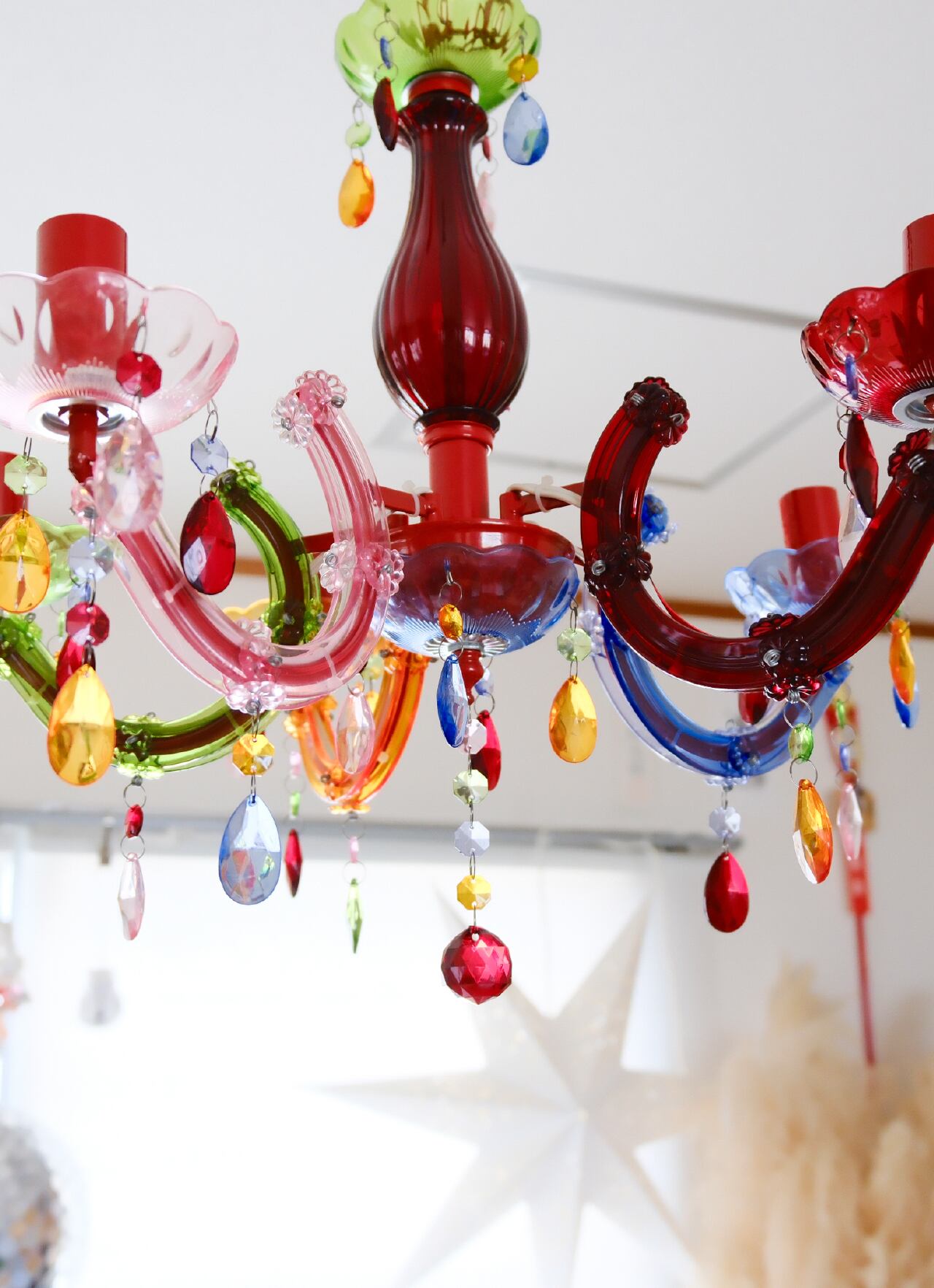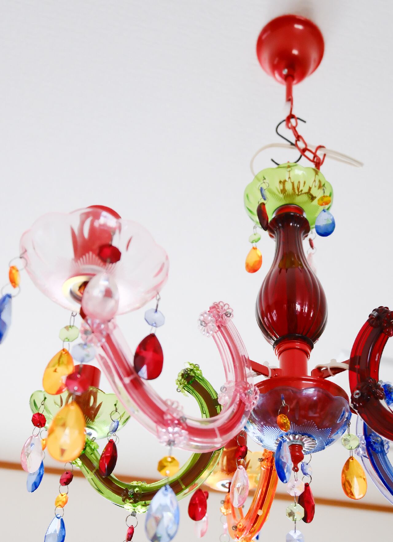 カラーアクリルを贅沢に使用した、遊び心満載のシャンデリア型のランプです!