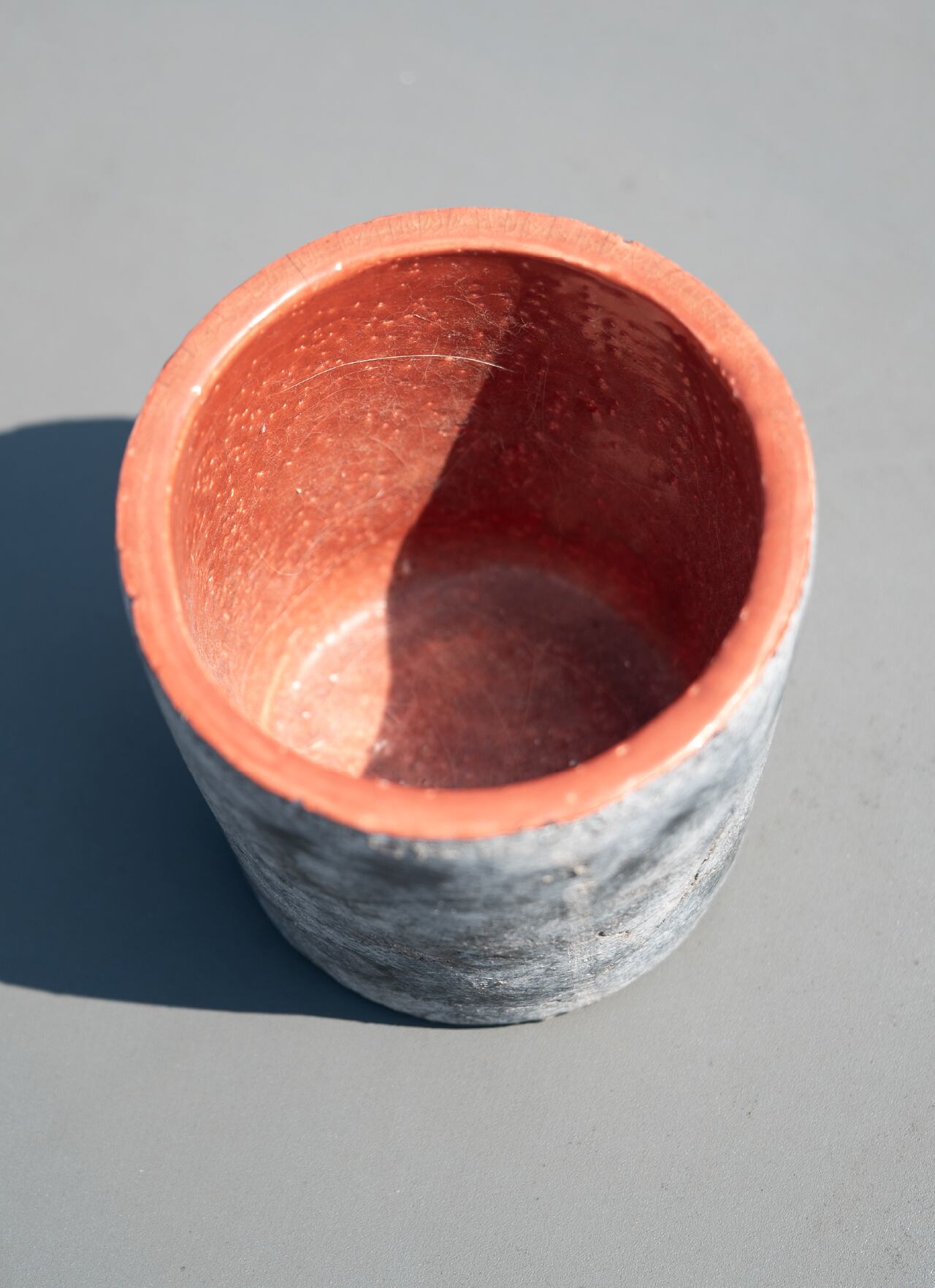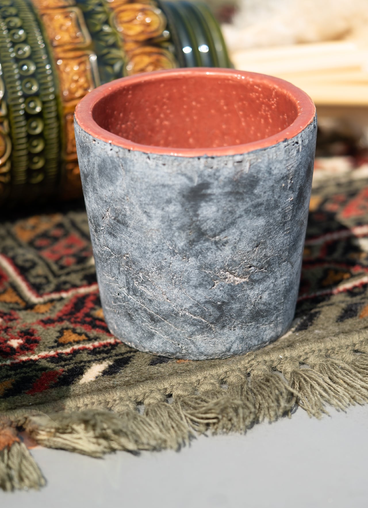 グランジな雰囲気漂う赤とグレーの組み合わせが魅力的な鉢アイテムです。