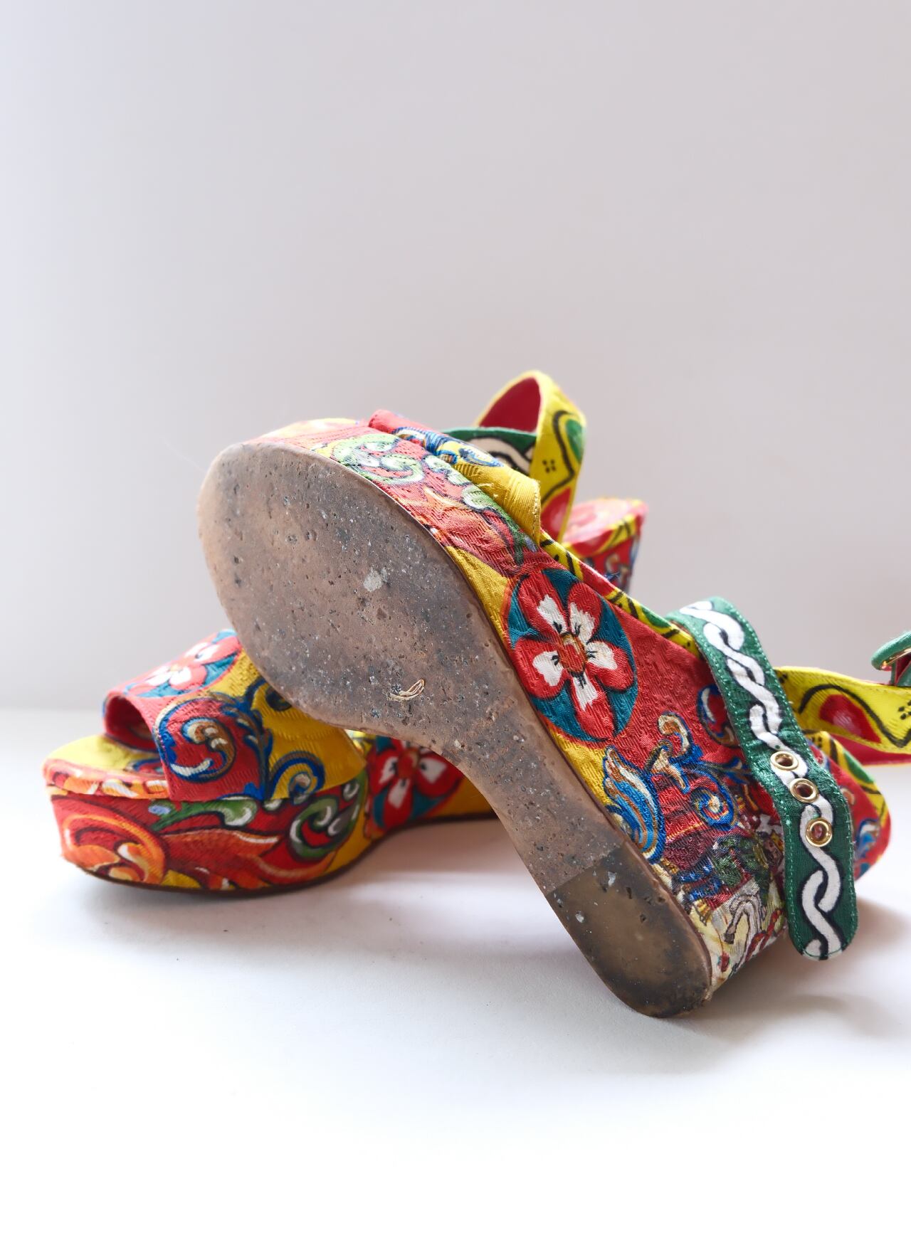 希少価値の高い洗練されたデザインと快適さが融合した、Dolce&Gabbanaのウエッジソールサンダル。
